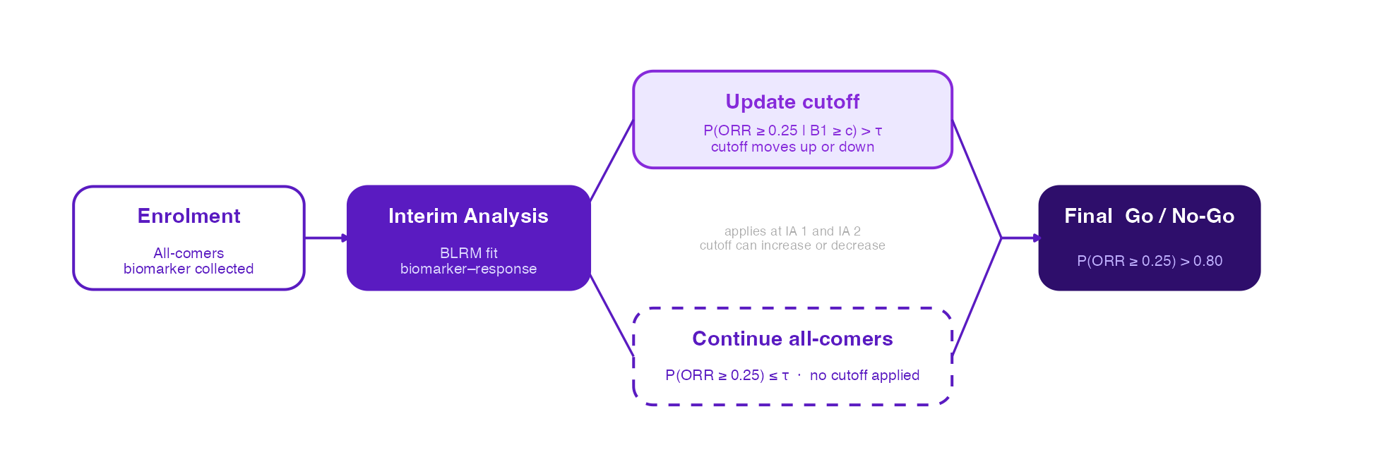 A practical explainer of adaptive enrichment in biomarker-driven oncology, illustrated with a single-arm Bayesian phase 2 example.